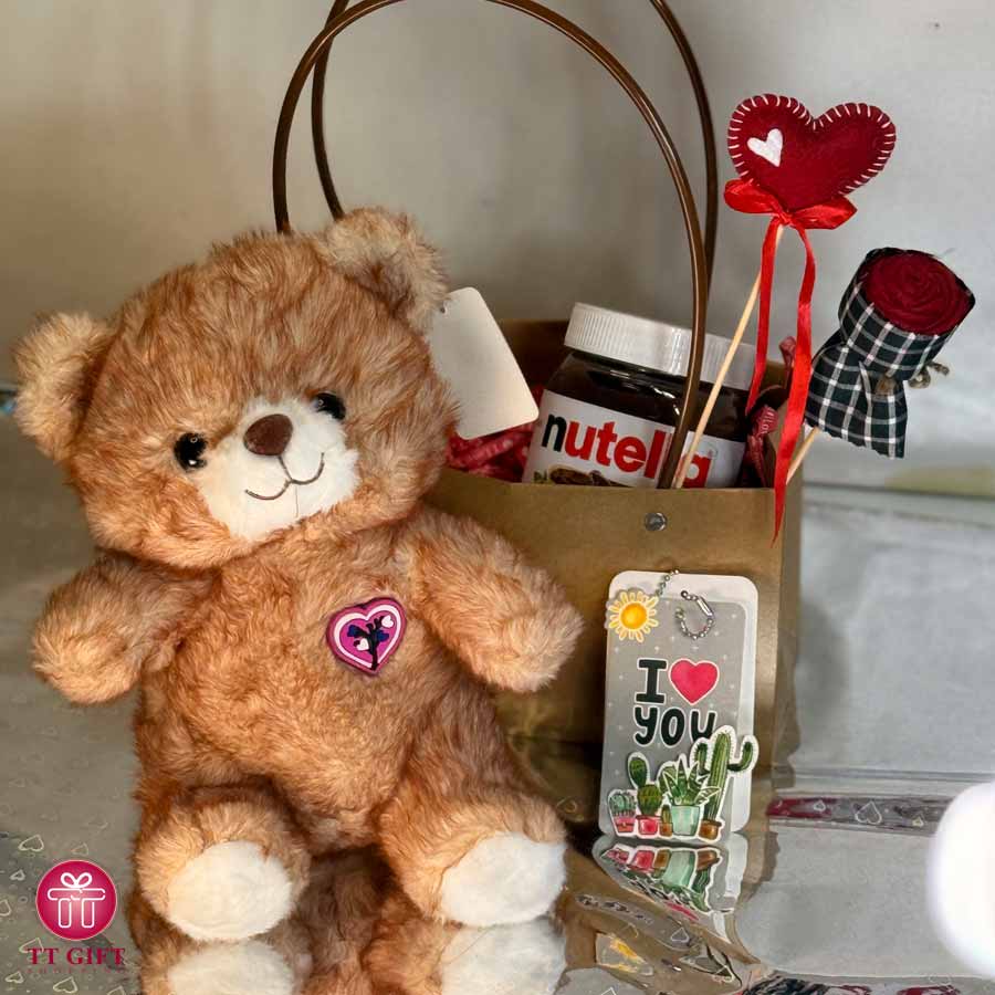 این پکیج زیبا شامل شکلات درجه یک خارجی و عروسک خرس قلب چراغدار است که با ضربه به قلب روشن میشود، و قابل ارسال به سراسر ایران است.