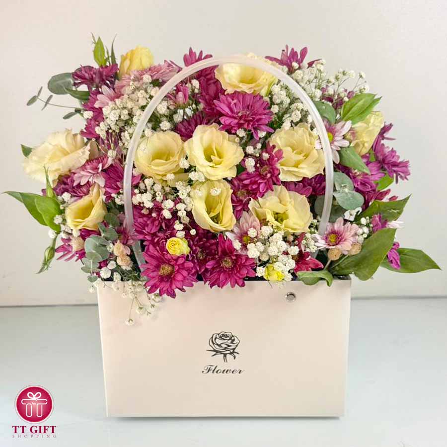 باکس گل داوودی و لیسیانتوس ارزان رها