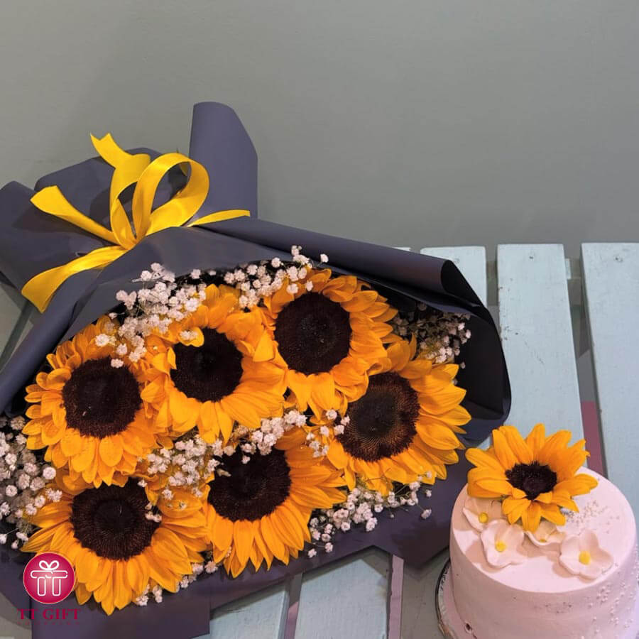 پکیج کیک و دسته گل آفتاب
