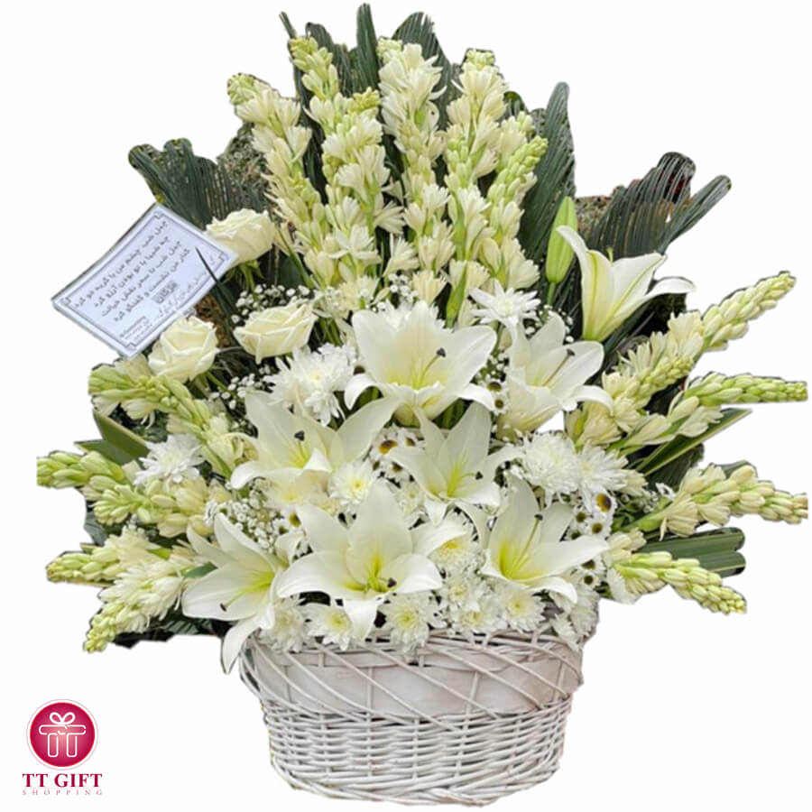 سبد گل مریم و لیلیوم سفید برای ترحیم