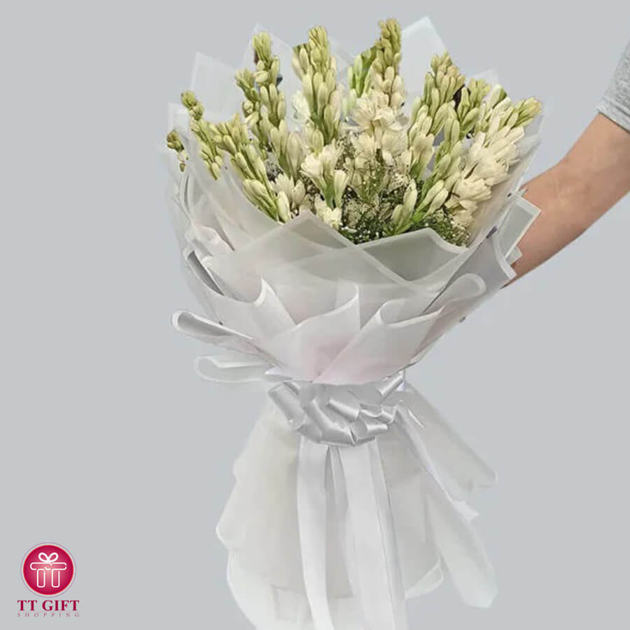 دسته گل زیبای فوق شامل 15 شاخه گل مریم سفید می‌باشد که با کاغذهای سفید مخصوص گل‌آرایی دیزاین شده است. برای مناسبت‌هایی مثل تولد و تشکر در شهرهای ایران سفارش داده می‌شود.